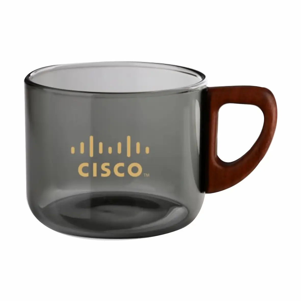 فنجان پیرکس شیشه ای دودی دسته چوبی